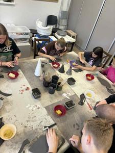 W miniony wtorek, 23 września 2025 roku, uczniowie Zespołu Szkół Specjalnych w Brzeziu rozpoczęli udział w drugiej edycji warsztatów ceramicznych zorganizowanych w GOK „Hutnik”. Pierwsze zajęcia obejmowały przygotowanie gliny oraz wykonanie z niej jesiennych dzwoneczków, przy wykorzystaniu techniki budowania z płata. Edukacja ceramiczna okazała się świetną okazją do doskonalenia umiejętności manualnych, kreatywności, a także twórczego myślenia. Cieszymy się, że możemy stworzyć coś nowego i miło nam wrócić do pracowni po wakacjach. Było super! Dziękujemy.