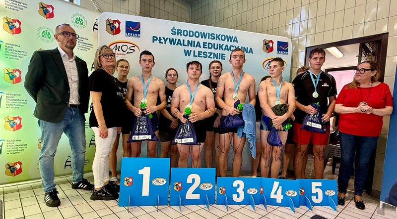 6 listopada 2025 roku czterech uczniów Zespołu Szkół Specjalnych w Brzeziu reprezentowało nas na „V Mitingu Pływackim im. profesora Sławomira Drozdowskiego” w Lesznie. Po emocjonujących startach, Jakub i Arkadiusz wywalczyli dwa trzecie miejsca, Dawid czwarte, a Bartosz uplasował się na piątej pozycji. Rywalizacja podczas spotkania stała na wysokim poziomie, więc tym bardziej cieszą wyniki naszych zawodników. Gratulujemy wspaniałych zmagań!