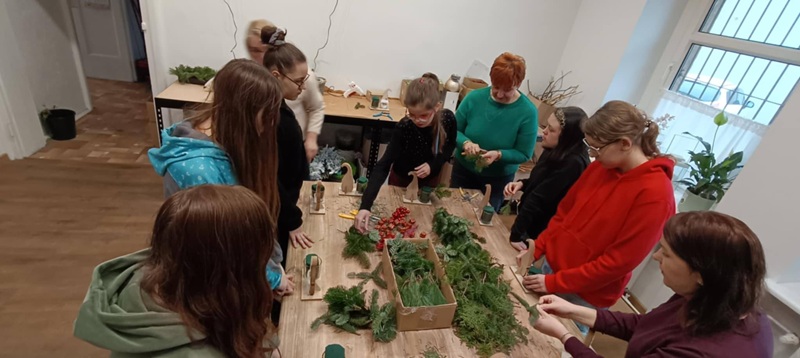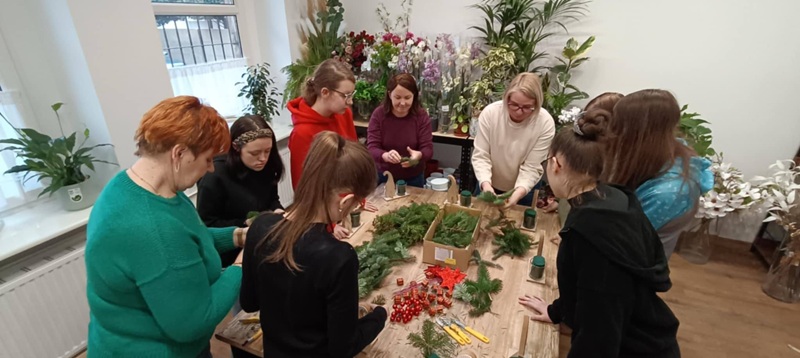 W ramach innowacji pedagogicznej „W świecie zawodów” uczennice Zespołu Szkół Specjalnych w Brzeziu, z różnych klas, wybrały się do kwiaciarni „Nowa Ja” w Gostyniu. Uczestniczki miały okazję zobaczyć czym zajmuje się florystka. Panie opowiedziały jak wygląda dzień w kwiaciarni oraz co można w niej kupić oprócz kwiatów. Następnie pokazały jak zaprojektować i ułożyć bukiet. Uczennice miały za zadanie nazwać oglądane kwiaty. Na zakończenie na wszystkich czekała niespodzianka – warsztaty świąteczne. Uczennice mogły samodzielnie wykonać stroiki, które później dostały w prezencie. Serdecznie dziękujemy kwiaciarni „Nowa Ja” za poświęcony czas oraz piękne stroiki.